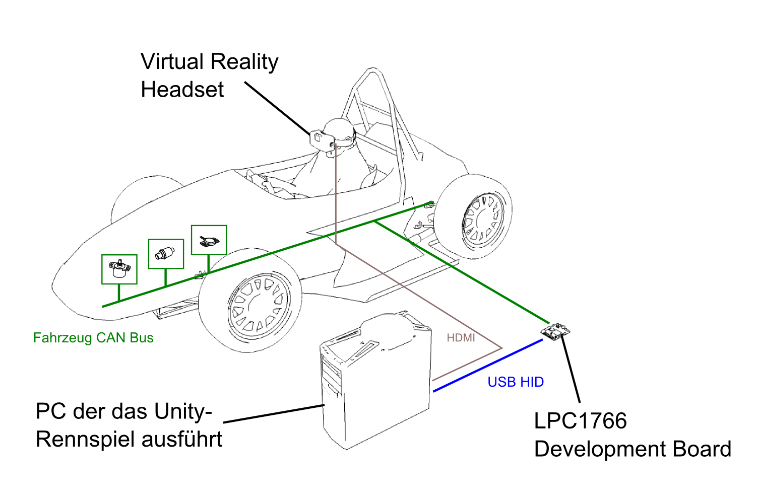 Projekt die Entwicklung eines Rennsimulators, mit dem man ein Videospiel spielen kann, während man im Fahrzeug